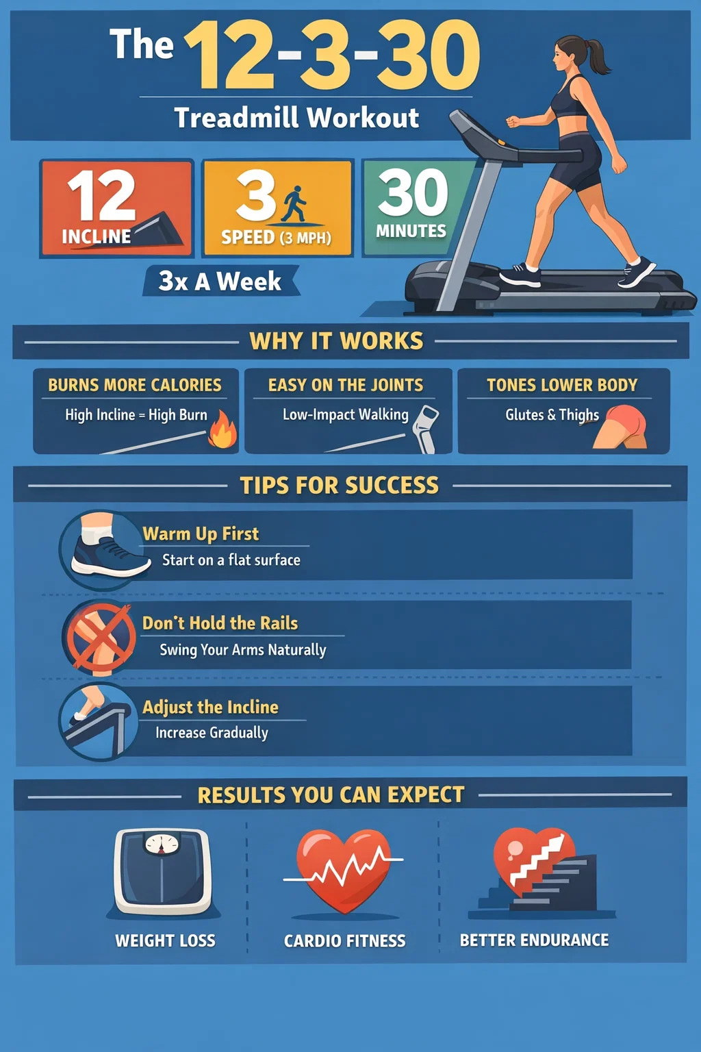 La « règle des 30 » que vous avez évoquée, qui est très populaire sur tapis roulants , fait généralement référence à la méthode d'entraînement « 12-3-30 » qui est devenue virale sur les réseaux sociaux.
